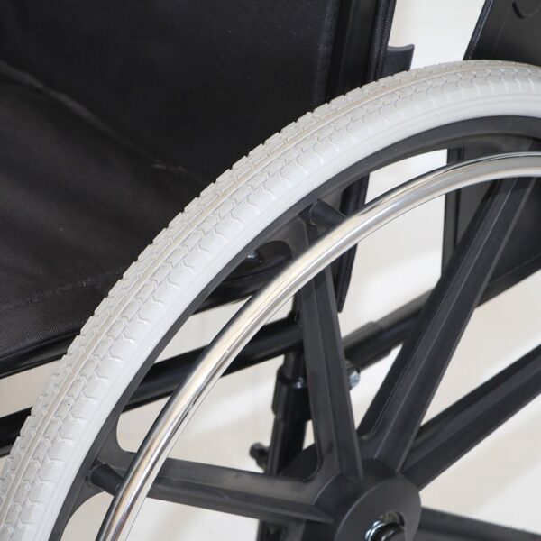 Solid PU rear tyres and 8×2” front castors